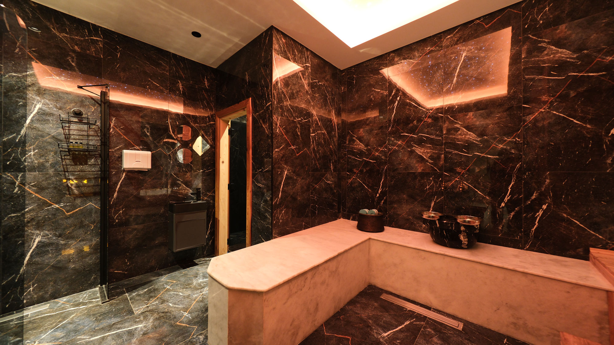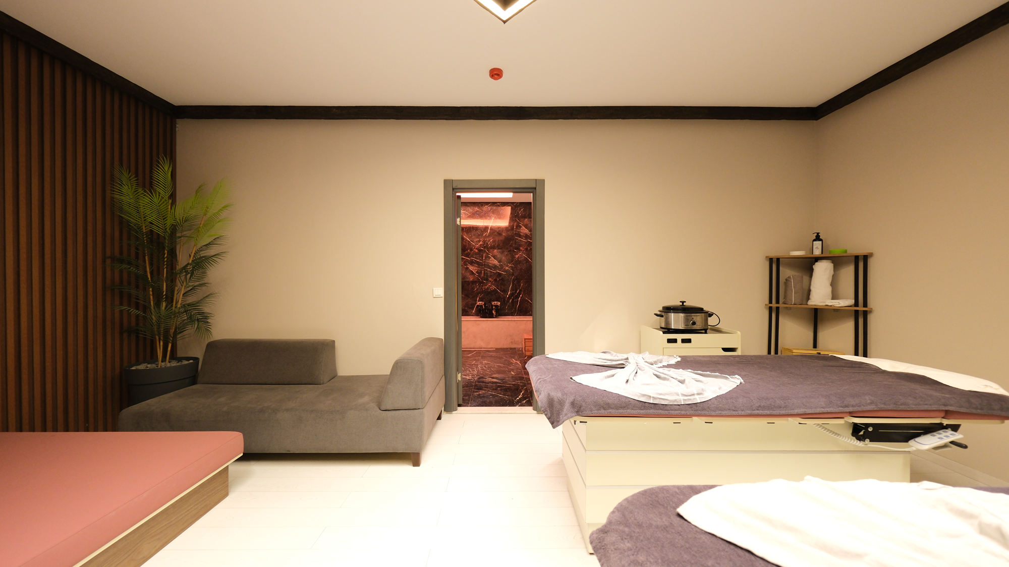Zone 216’daki spa malikesi, zarif ve modern tasarımıyla dikkat çekiyor. Doğal taşlardan, sıcak ahşap detaylarına kadar kullanılan her malzeme, ziyaretçilere sakinleştirici ve huzurlu bir ortam sunuyor. Aydınlatmanın özenle seçildiği, rahatlatıcı renk tonlarının hakim olduğu bu mekan, misafirlerine adeta bir huzur yolculuğu vaat ediyor.